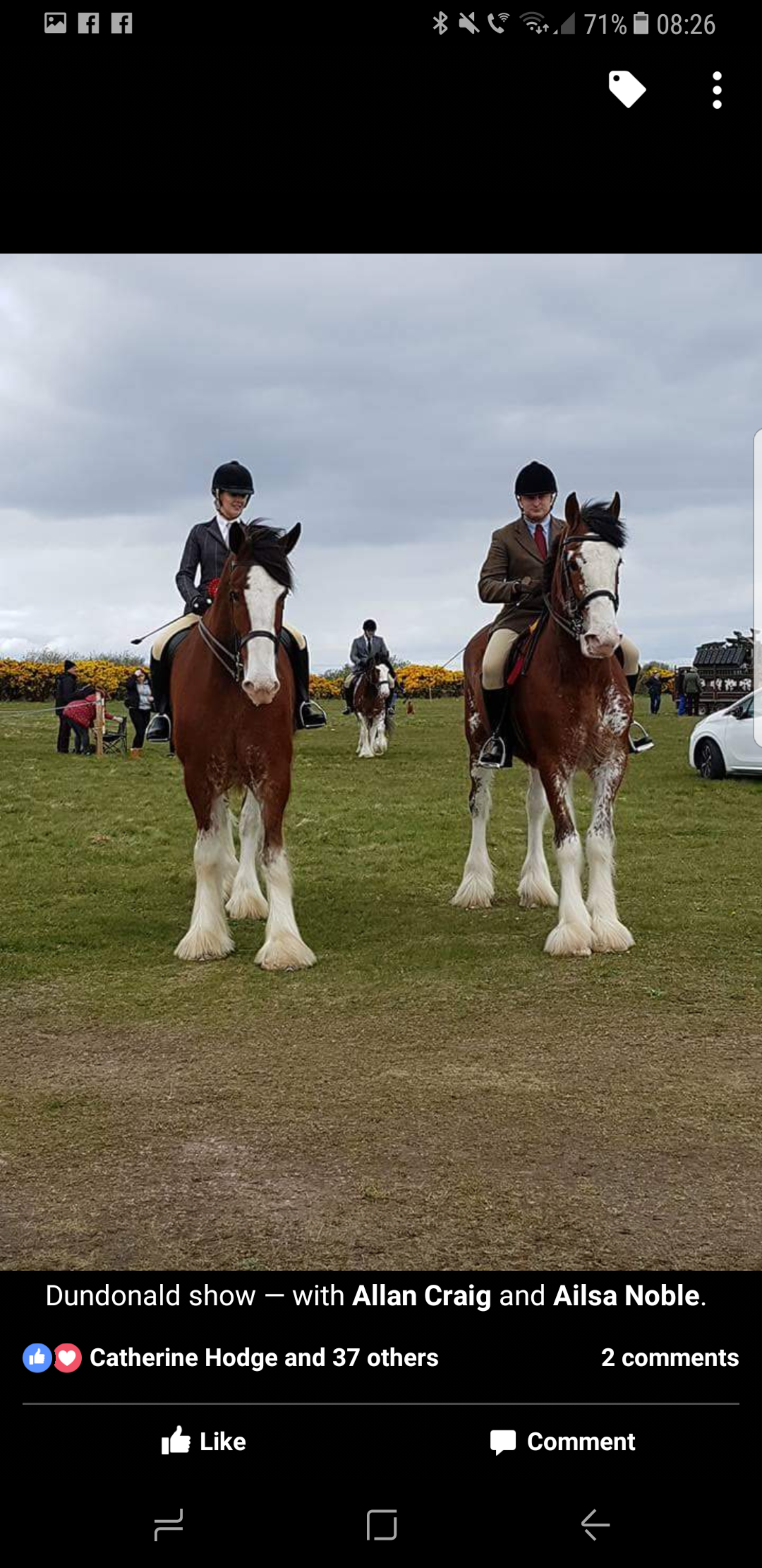 Reserve Champion Clydesdale was Millisle Cracker, owned by Hugh Ramsay and produced by Allan Craig and second place in the Ridden went to Hugh's granddaughter Ailsa Noble with Peggyslea Andy.